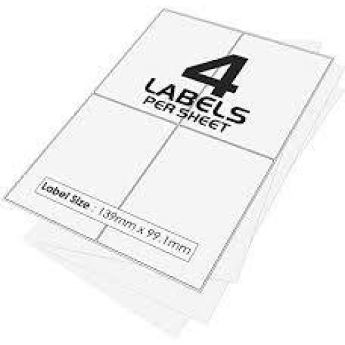 Each sheet contains 4 labels, with a size of 139mm x 99mm. This makes them perfect for a variety of applications, including labeling files, folders, and other office supplies. The labels are also easy to print and can be customized with your own text and graphics.